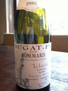 X’masなので、ちょっと気合いの入ったワインを飲もうと、Dugat-Pyをあけた。ポマール・ラ・レブリエール・ドメーヌ・ベルナール・デュガ・ピィ(Pommard La Levriere Domaine Bernard DUGAT-PY 2005)。素晴らしい果実の凝縮感で力強い。やはり、ちょっと飲むのが早すぎたか。若いヴォギュエを飲んだ時のような感覚。
