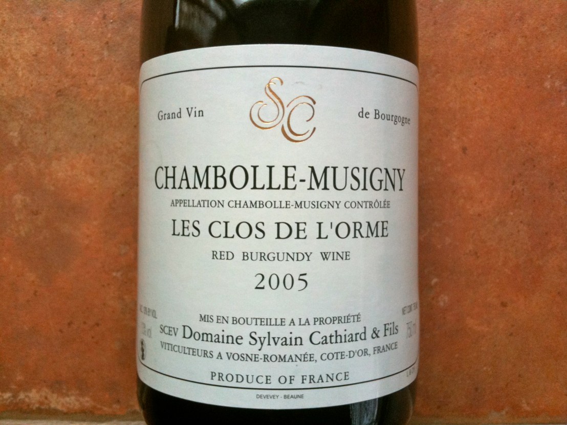 シャンボール・ミュジニー レ・クロ・デ・オルム – ドメーヌ・シルヴァン・カティアール2005(Chambolle-Musigny Les Clos des I’Orme Domaine Sylvain CATHIARD)。このところ、寒いせいか、ちょっと強めのブルゴーニュを好んで飲んでいる。このシルヴァン・カティヤールも、Rパーカーが高く評価していることからも推測されるが、とてもしっかりしたピノ。ひと口めは、アマローネかと思わせるような香ばしさ、甘さを感じるが、そこから奥行きのあるピノの味わいが立ち上がる。