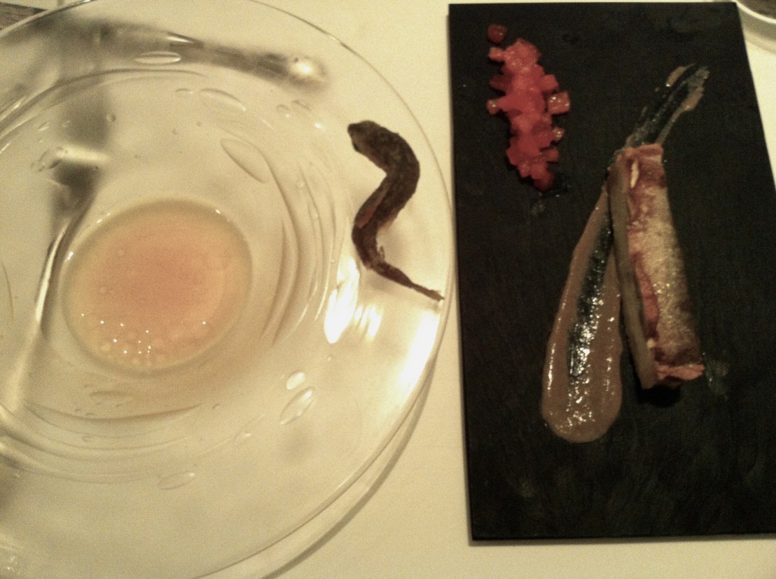 ↑ これは、稚鮎のフリットとキッシュ。という風に2種類のプレートが続いていく。素材を活かしたバランスのよい味つけ。ワインも充実しており大満足。