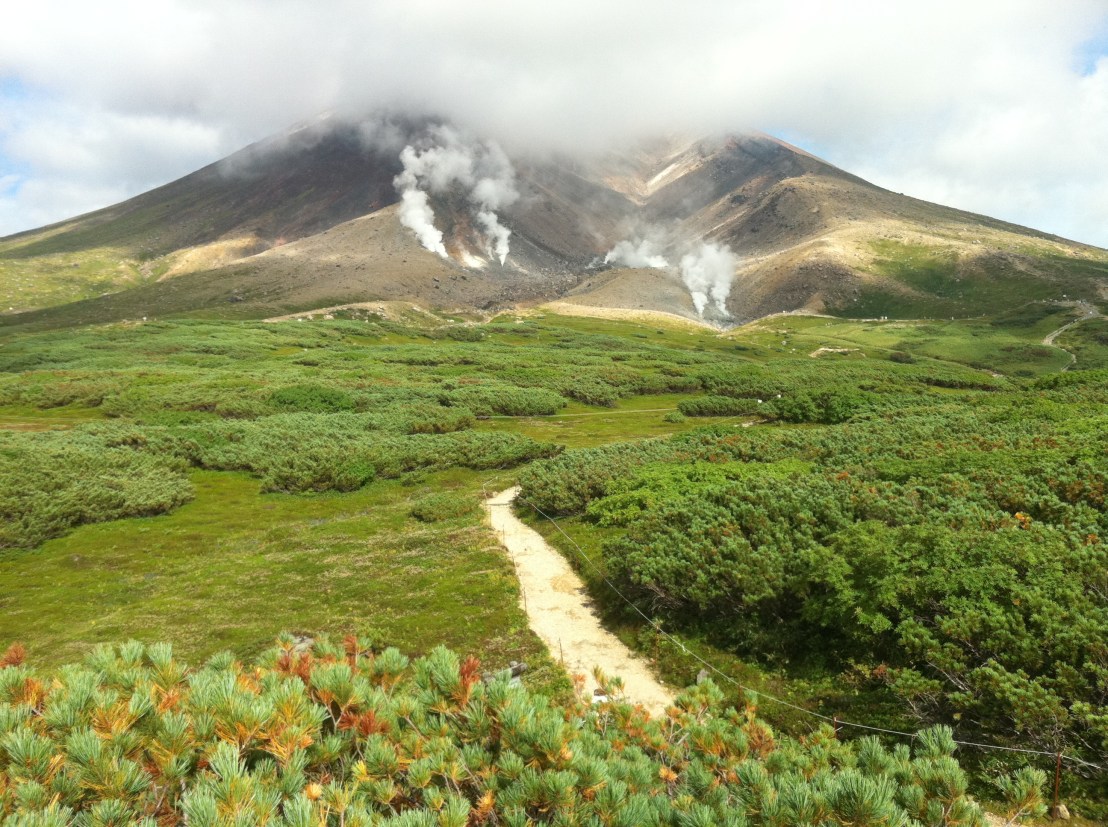 旭岳の噴煙は美しくたなびき、絶好のトレッキング日和で、
