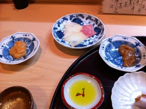 ご主人が、次から次へと珍味とお酒を薦めてくれるので、ついつい調子にのって。このわた、このこ、くじら、などをつまみに出来あがってしまう。くじらをオリーブオイルで食べたのは初めて。