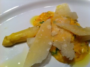 エノテカ・ドォーロにて。今年、初の白アスパラと、久しぶりのサンジョベーセ、ブルネッロ・ディ・モンタルチーノ(2001)。最初は、ちょっと舌にタンニンを感じるが、時間が経過すると、果実味とその凝縮感、クリアさ、が出てくる逸品。白アスパラは、もう少し大きなのが食べたかったが・・・贅沢。