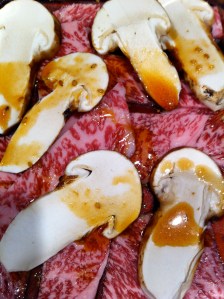 「かわむら」さんから頂いた牛肉とメキシコ産松茸で、焼き肉。
