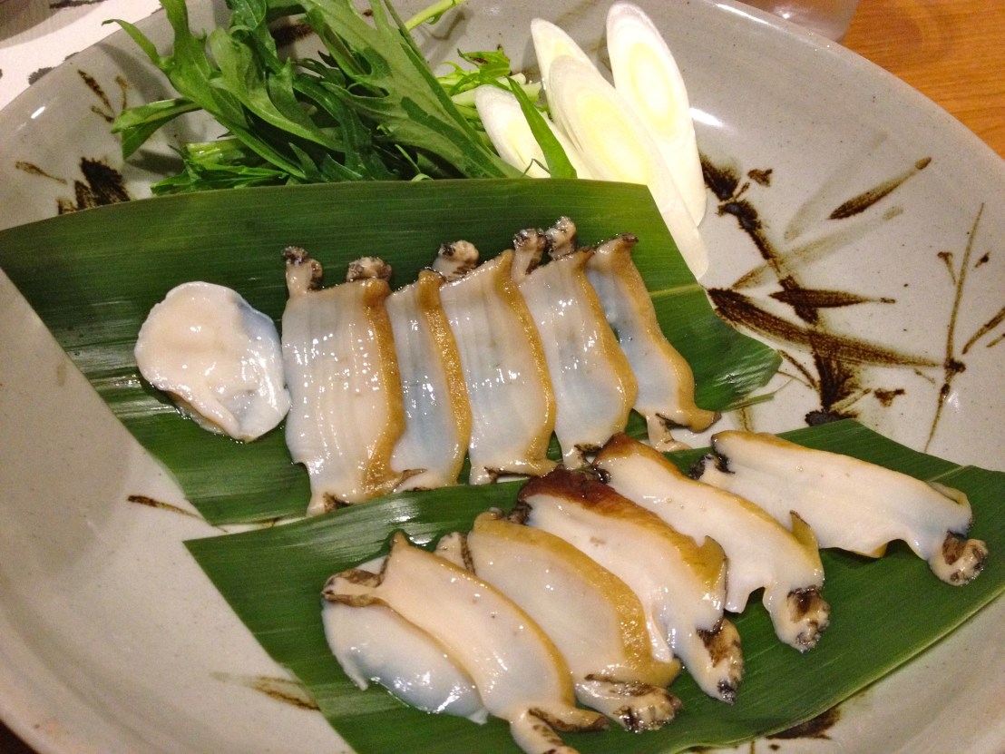 鮑のしゃぶしゃぶと、壱岐の焼酎に舌鼓を打つ。
