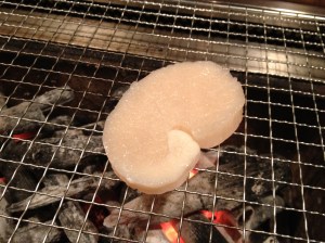 1cm弱の厚さに切って、炭火で、炙って、少し醤油・・