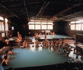 さすがに、温泉の中は撮影できなかったので、ネット上の写真を拝借すると・・・こんな感じで混浴。