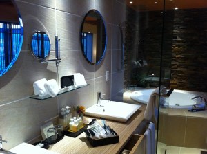 掛け流しの展望風呂もやっぱり広い。想像以上に快適。