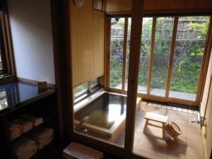 なんと表現すればよいか、難しい。特別な高級感はないのに、さりげなく贅沢な気分にさせられるし、山草が生い茂っているようにも見えて、計算された庭の佇まいのようでもある。これが、玉の湯の美学でしょうか。