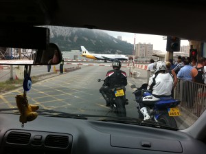ロンドン〜ジブラルタル、飛行機で約3時間。タクシーが、信号で止まる。通り過ぎるのは、電車ではなくて飛行機。