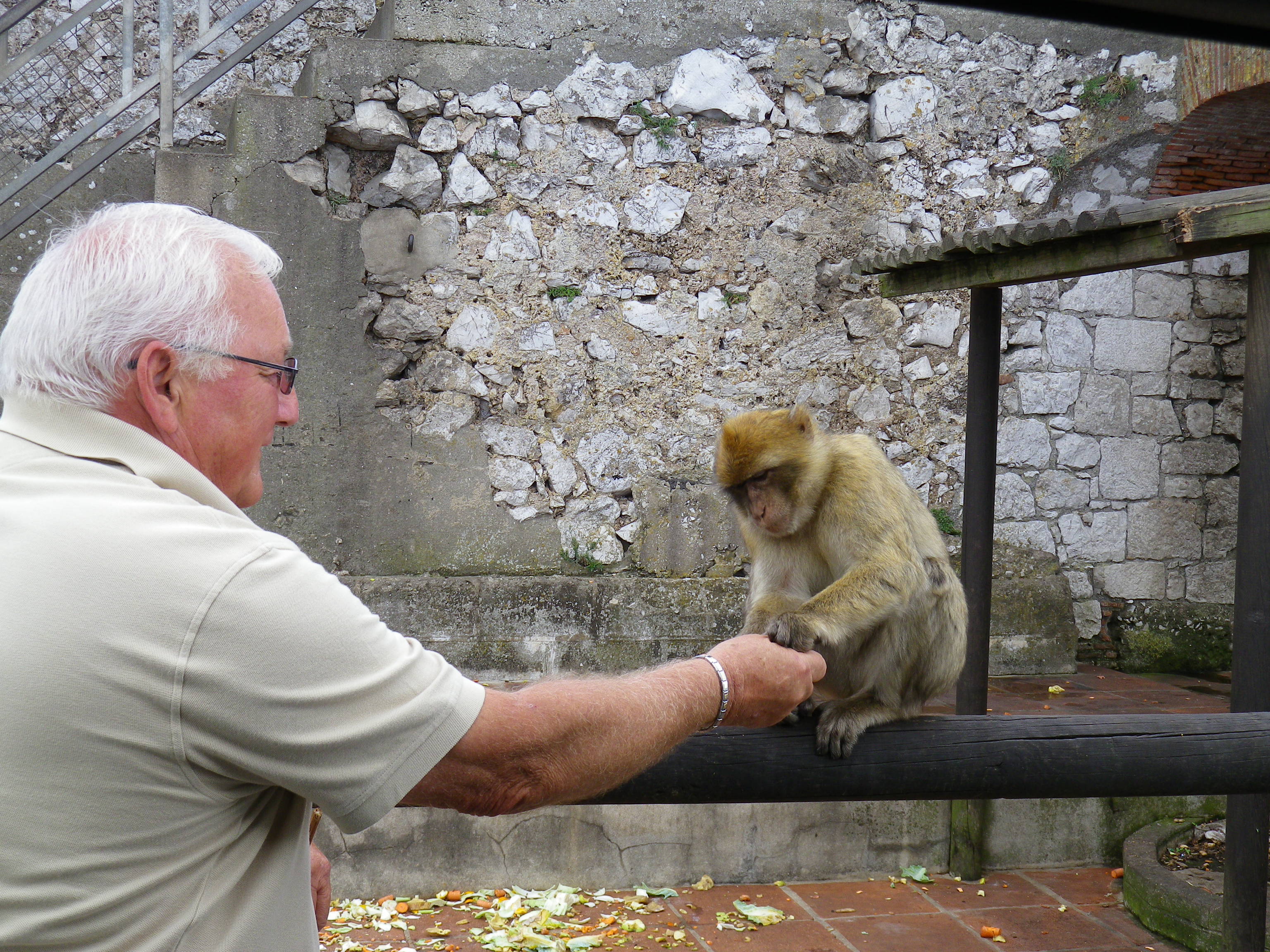 ガイドのアーサーさんは、猿と仲がよい。アーサーさんは、戦争中に戦渦をのがれる船の中で生まれ、その船長の名前をもらったという。ジブラルタルの歴史は数多くの戦争の歴史でもあり、彼の歴史も複雑で深い。現在ジブラルタルは、イギリス領土であり、スペインとの関係は複雑である。