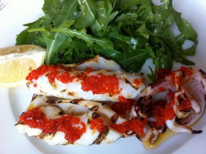 カラマリグリル。Nは、これまで食べた中で最もおいしい「イカ焼き」だと言う。