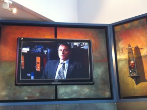 ↑ レセプションの液晶テレビも作品に組み込まれており、偶然にも「ミレニアム」のミカエル役の俳優(Michael Nyqvist)が映っていた。