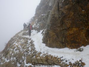 初冠雪で、ちょっと足場が不安な鎖場もあったが、