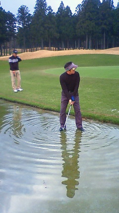 鴨池越えpar3。右にはずすと、もうボールは回収不能。